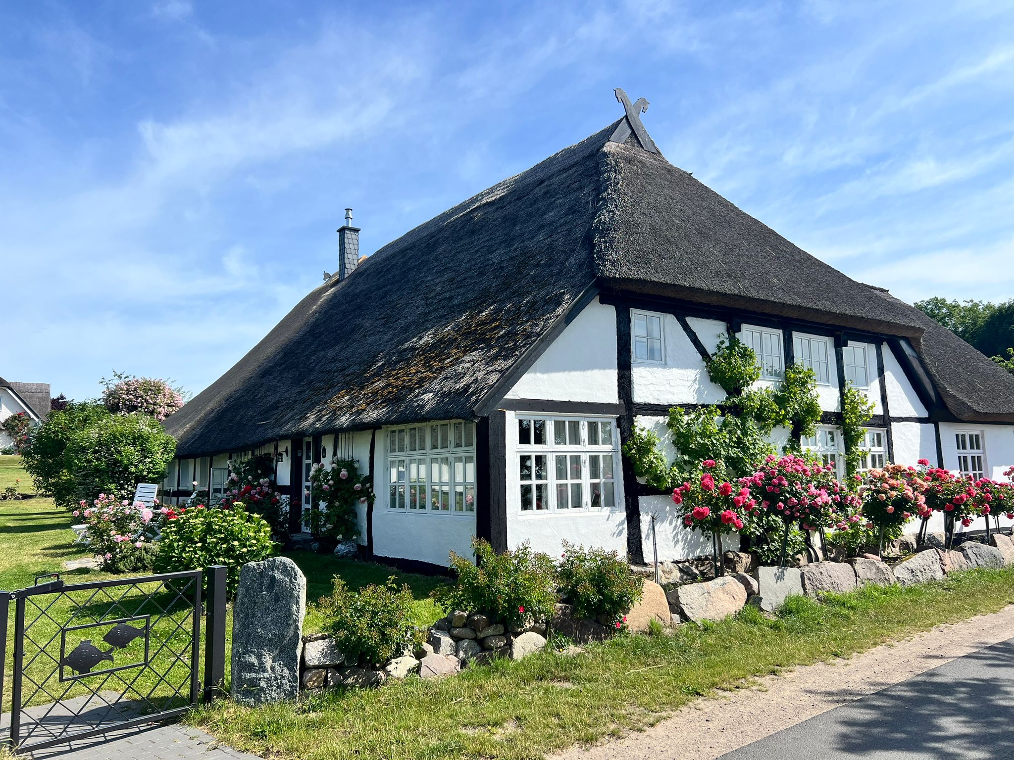 - Spaziergang auf Rügen mit alten, reetgedeckten Häusern